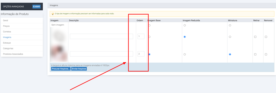 E se desejar trocar a ordem das miniaturas, basta ordenar neste campo conforme desejar. O número menor, irá aparecer antes.