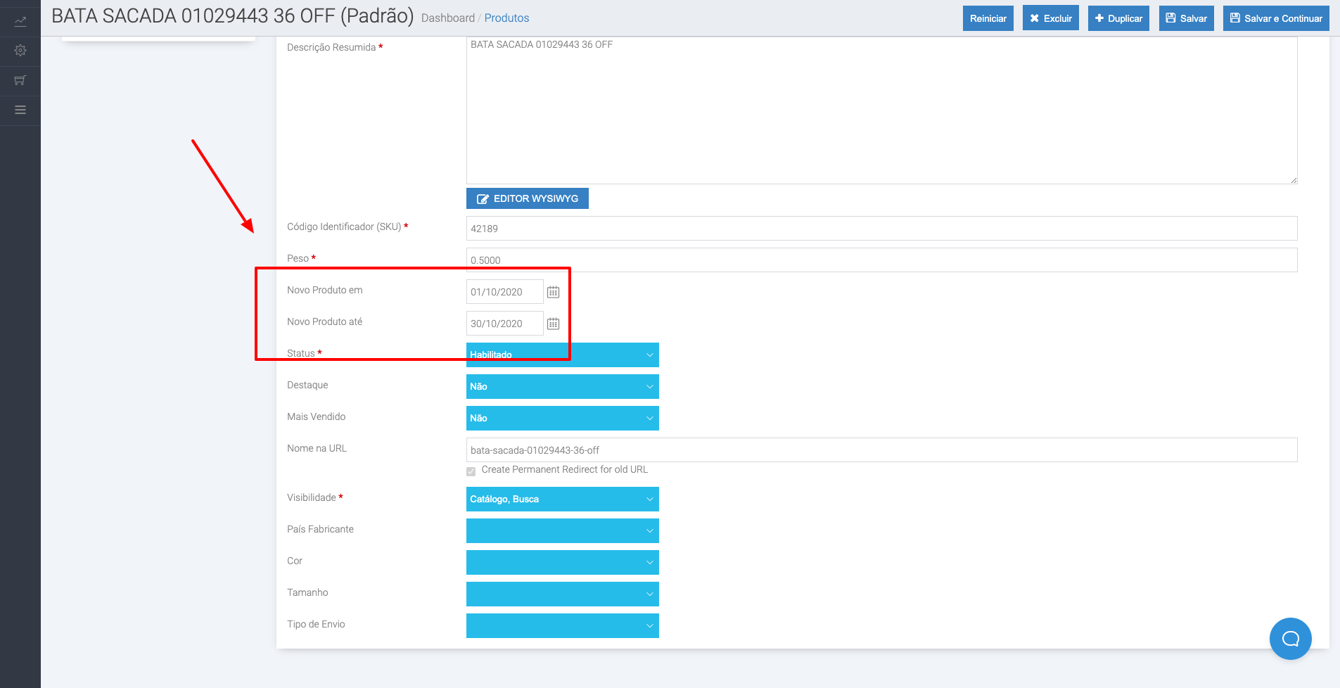 \- Novo Produto até: indica o fim do período.
