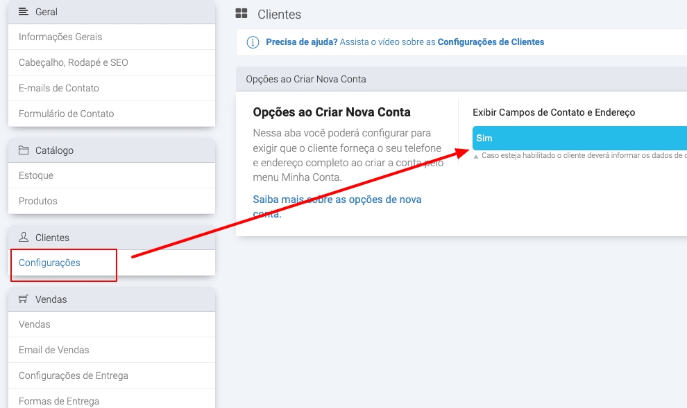 Nessa aba você poderá configurar para exigir que o cliente forneça o seu telefone e endereço completo ao criar a conta pelo menu Minha Conta.