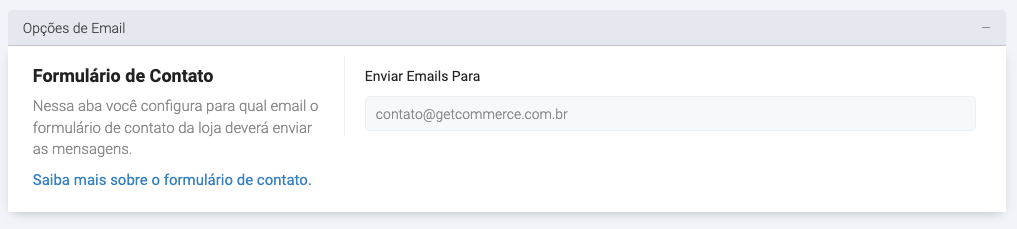 Então, nessa aba você configura para qual e-mail este formulário de contato da loja deverá enviar as mensagens.