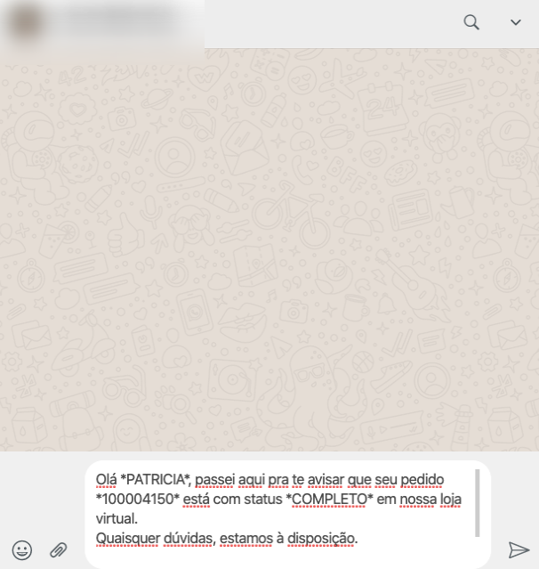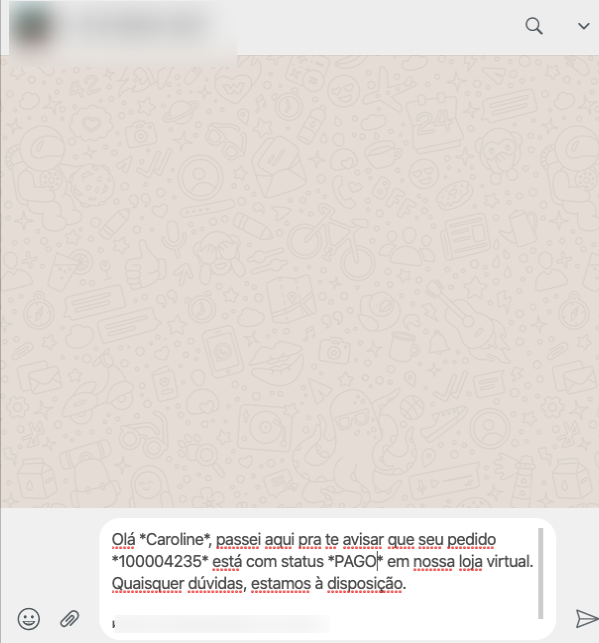 O módulo do WhatsApp pedido permite que você envie mensagens transacionais para o cliente, direto no seu número de WhatsApp.