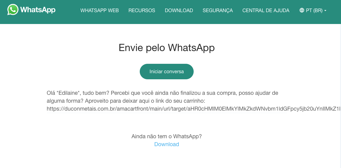 Recuperar carrinho abandonado via WhatsApp