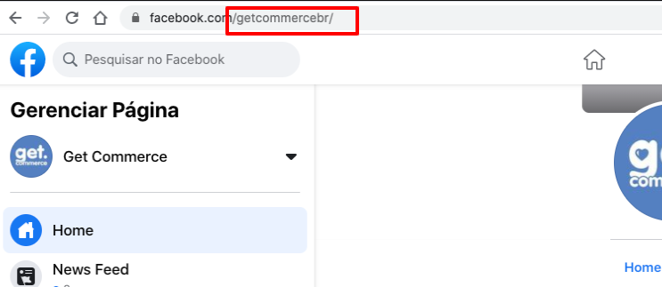 Facebook Messenger: Digite apenas o nome de usuário da sua página do Facebook. No nosso caso é apenas getcommercebr. Você identifica o usuário, pela sua URL do Facebook.