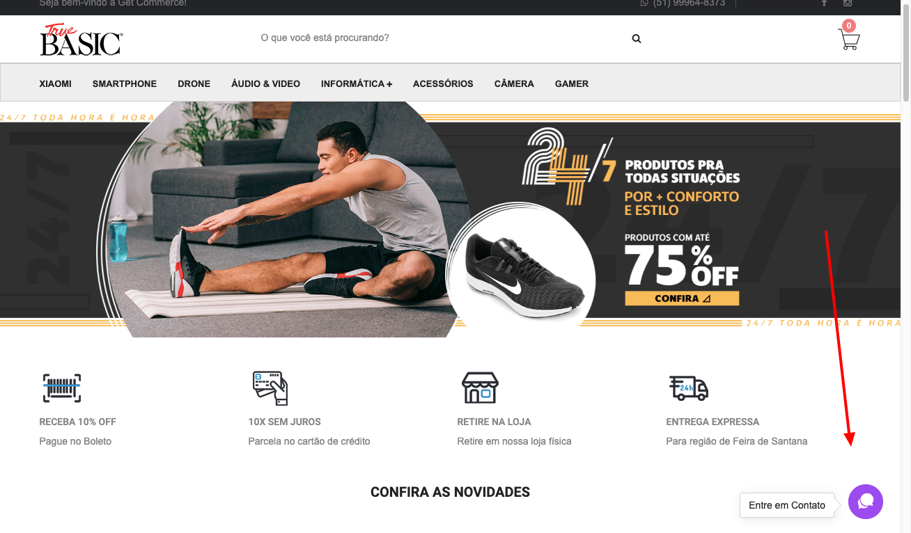 E acesse o frontend da loja virtual. Você irá visualizar o ícone flutuante ali na lateral inferior direita da loja.