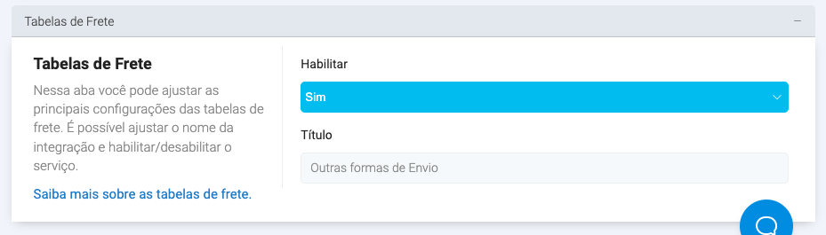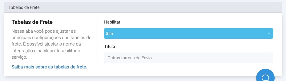 Nessa aba você pode habilitar o módulo de entrega personalizado, com tabelas de frete.