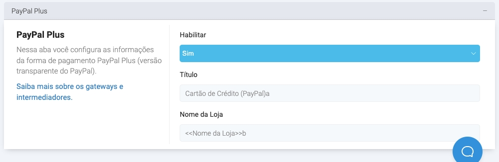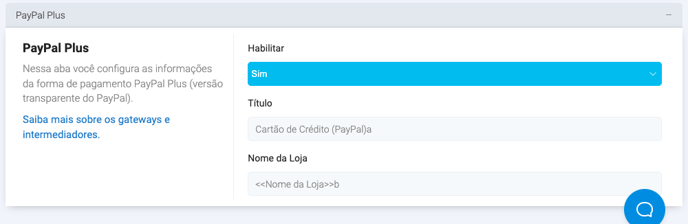 Nessa aba você pode configurar as informações da forma de pagamento do PayPal Plus.