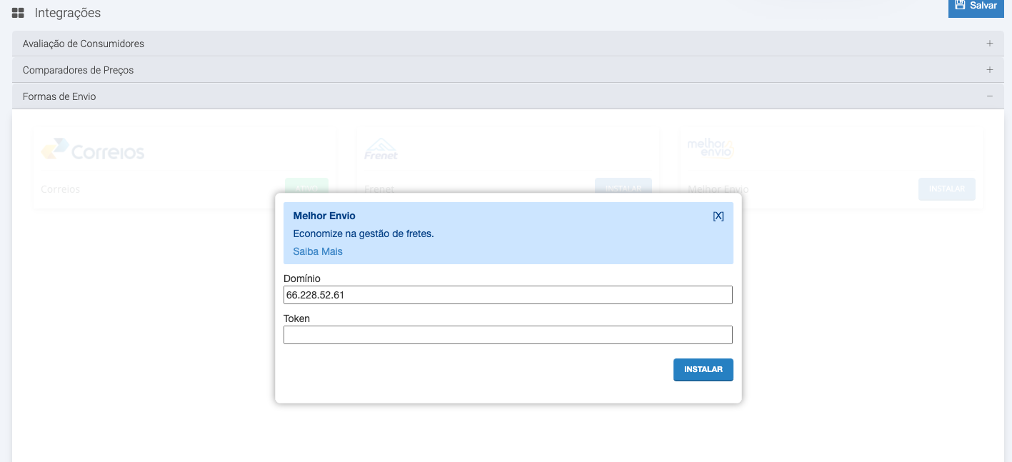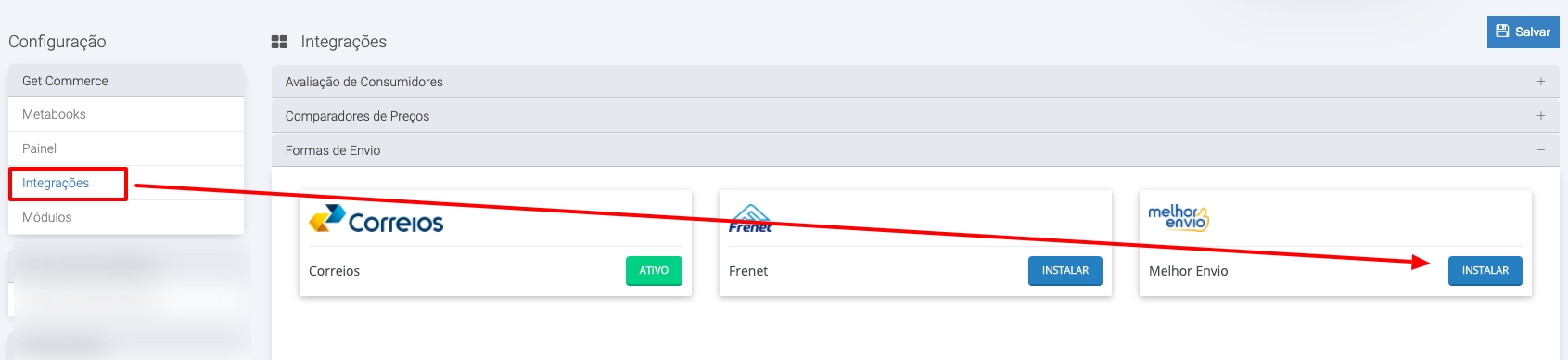 Acesse o seu painel e vá no menu Configurações / Sistema / Formas de Entrega. Agora é só clicar em "Instalar" no módulo do Melhor Envio.