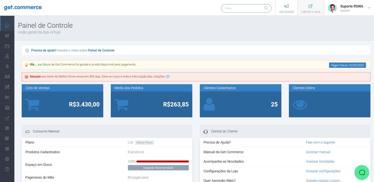 Vamos lá! São apenas dois passos bem simples: ativar um token de acesso que você pega no Melhor Envio e, depois, configurar o método de entrega na Get Commerce.