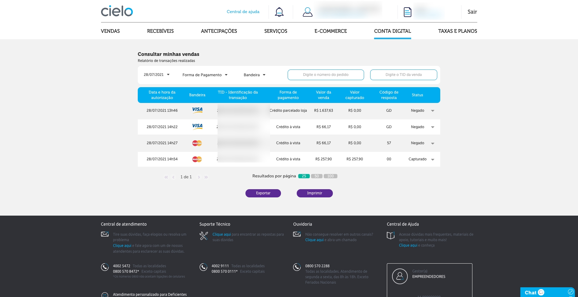 Depois de tudo ok, todos os pedidos da loja virtual irão aparecer na sua conta da Cielo, no link: https://minhaconta2.cielo.com.br/minha-conta/vendas