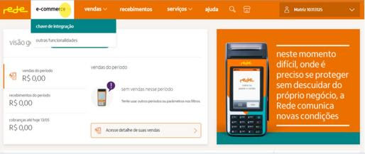 Depois que você já possui seu acesso ao portal da Rede, veja como é simples e rápido gerar o sua chave de integração, depois de logado basta: