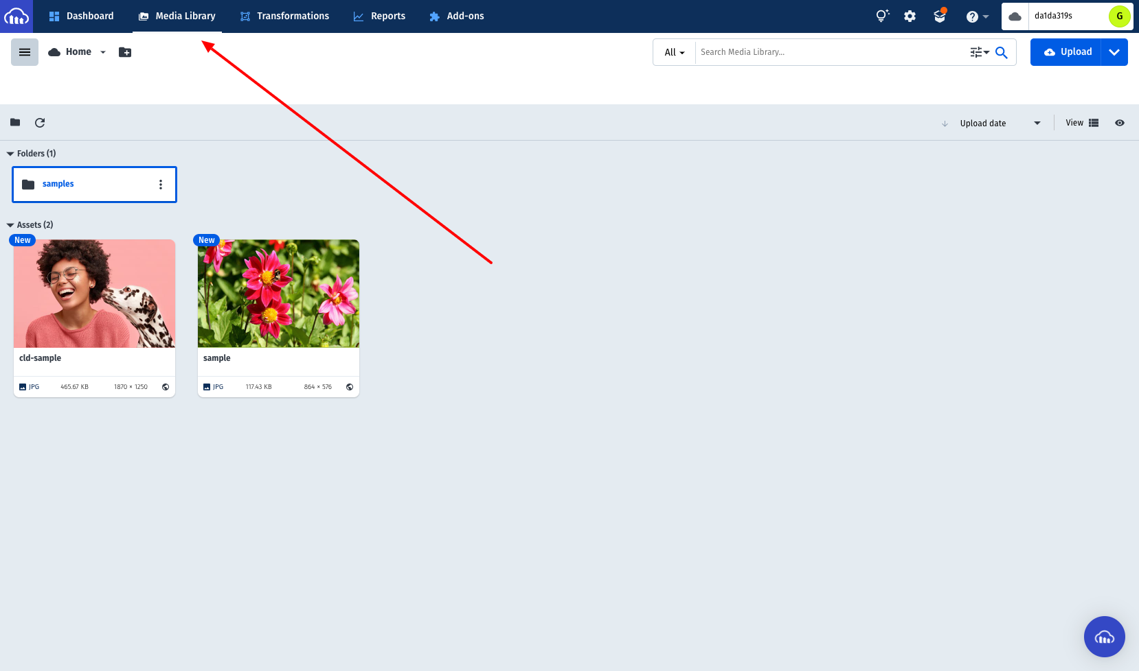 Clicando em "Media Library" no painel do Cloudinary, você já consegue visualizar as imagens convertidas.
