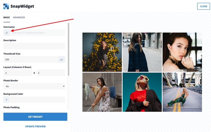 Acesse o link: https://snapwidget.com/ e clique no botão: