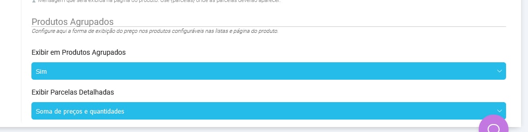 Exibir Parcelas Detalhadas: "Sim" para exibir a mensagem na página dos produtos (mostrando todas as opções de parcelas para o produto em questão) e "Não" para não exibir;