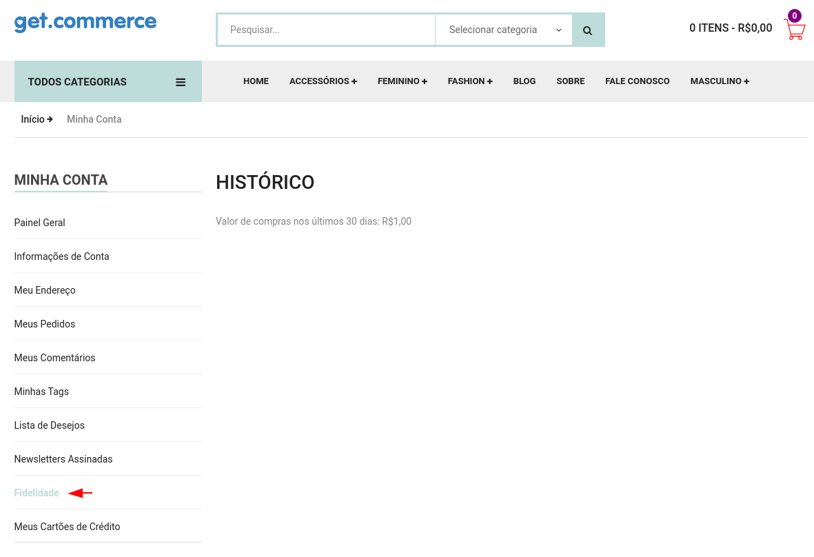 Descrição: Mensagem que será exibida na aba "Fidelidade" na página "Minha Conta" dos clientes: